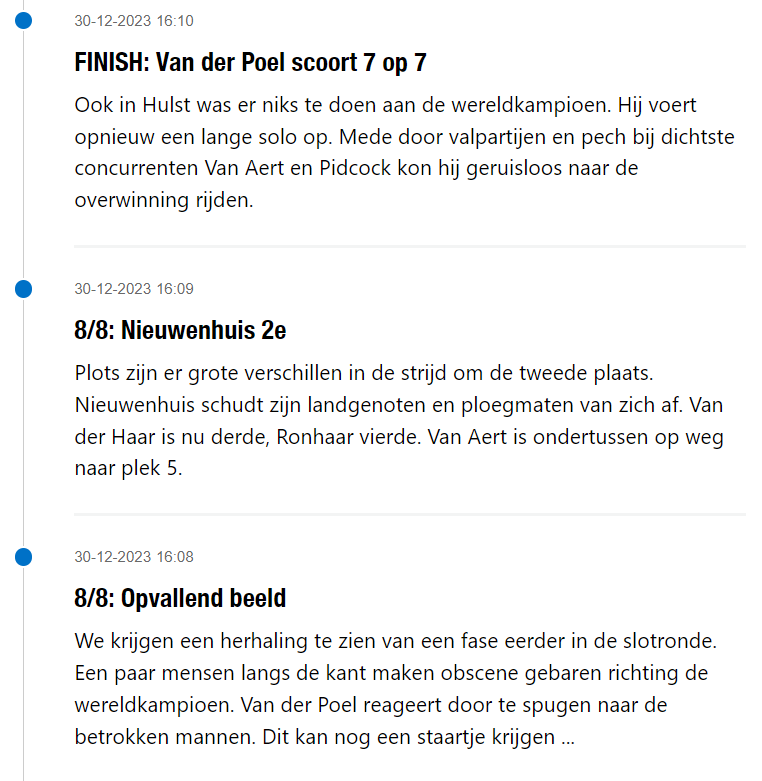 Sinds 2022 schrijf ik voor Het Nieuwsblad als liveblogger. Kortweg houdt dat in dat ik tijdens een wedstrijd, vooral koers en voetbal, updates geef over wat er in de wedstrijd gebeurt.